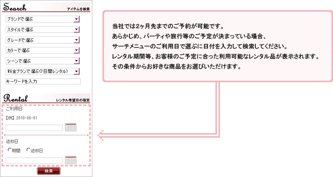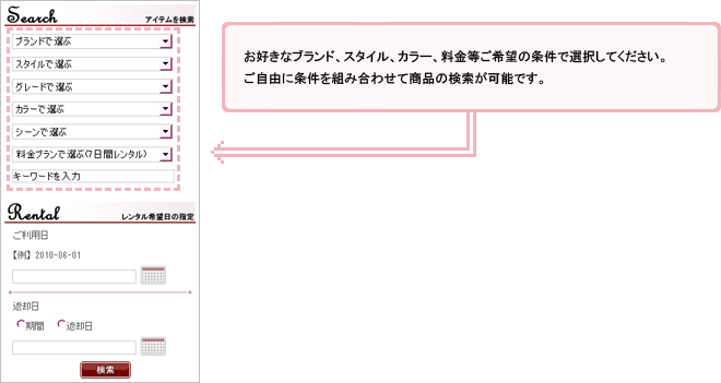 レンタル商品の検索方法