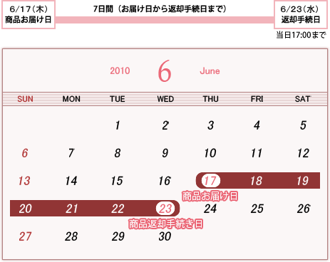 - レンタル期間は商品のお届け日をスタートとし、お客様の発送した日までとなります。