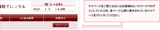 マイページはお客様の登録情報や、ご予約のレンタルの確認等これまでの履歴をチェックすることが出来る便利なページです。
