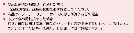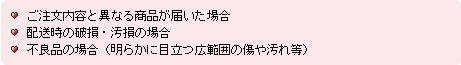 上記の場合には商品到着から24時間以内にメール又はお電話にてご連絡ください。